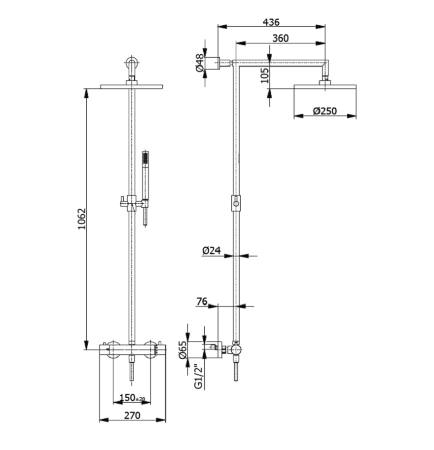 Giulini Giovanni zestaw natryskowy termostatyczny ścienny z deszczownicą 25 cm czarny mat 65000WC/CZAR
