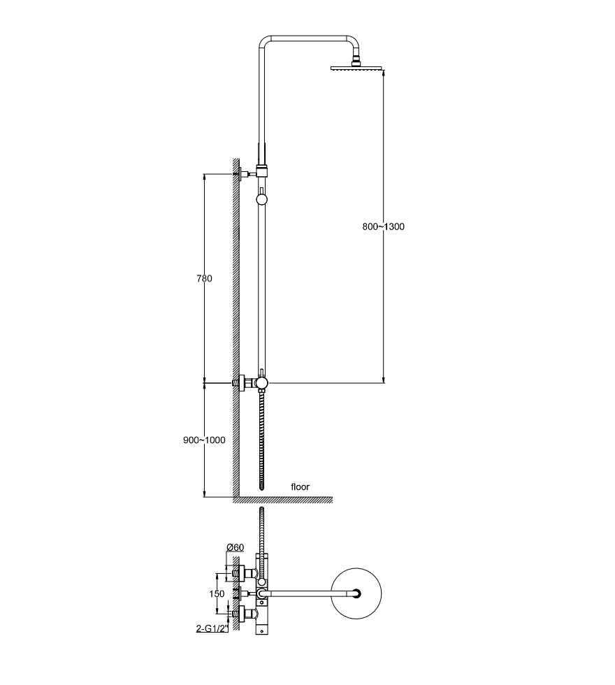 Przykładowe zdjęcie KOHLMAN Axel Gray natynkowy zestaw prysznicowy QW276AG szczotkowany grafit