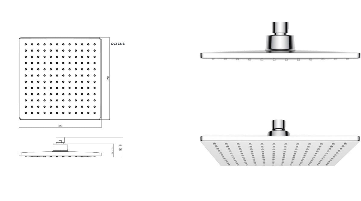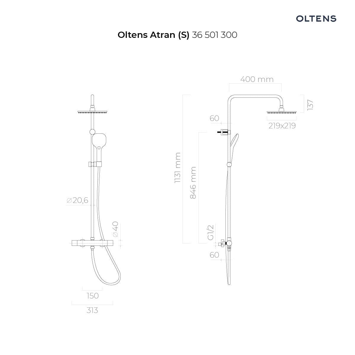 Cechy produktu Oltens Atran zestaw prysznicowy termostatyczny z deszczownicą kwadratową chrom 36501100