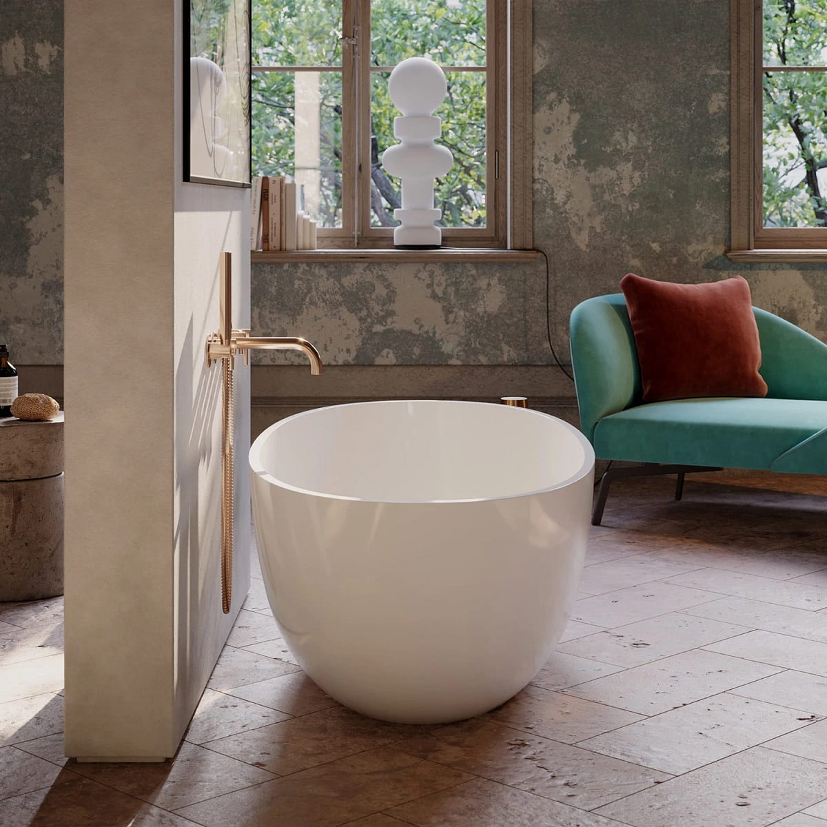 Wanna wolnostojąca z kolekcji OMNIRES SHELL M+ charakteryzuje się współczesną eliptyczną formą, która miękką linią zwęża się ku podstawie. Minimalistyczna bryła wygląda lekko a zarazem solidnie, tworząc efekt wyrzeźbionego ze skały monolitu. Wewnętrzny profil został wyprowadzony tak, by zapewnić komfort podczas kąpieli. Bryła wykończona jest solidnymi, precyzyjnie wykonanymi rantami o grubości 2 cm. Wanna charakteryzuje się niskim osadzeniem, co wzmacnia komfort użytkowania przy samodzielnym wchodzeniu i wychodzeniu czy kąpaniu dzieci. Posiada wygodne w użytkowaniu rozwiązania, takie jak syfon z dopasowanym korkiem klik-klak w komplecie, czy odpływ zlokalizowany centralnie, dzięki czemu w wannie mogą wygodnie wypoczywać dwie osoby.