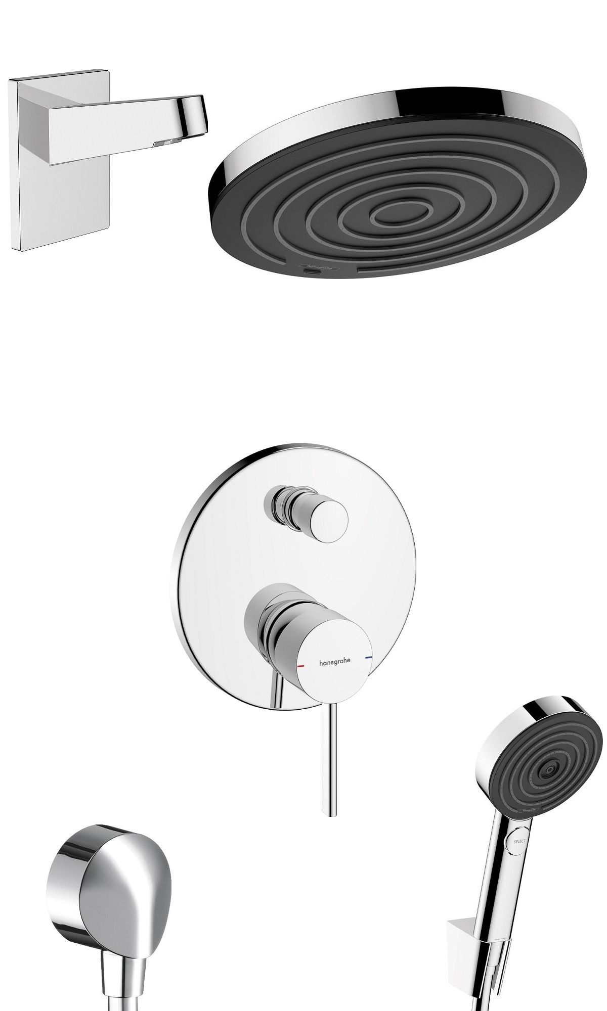 Elementy składowe hansgrohe Zesis S kompletny prysznicowy zestaw podtynkowy z deszczownicą Pulsify 260 1jet Chrom Połysk :