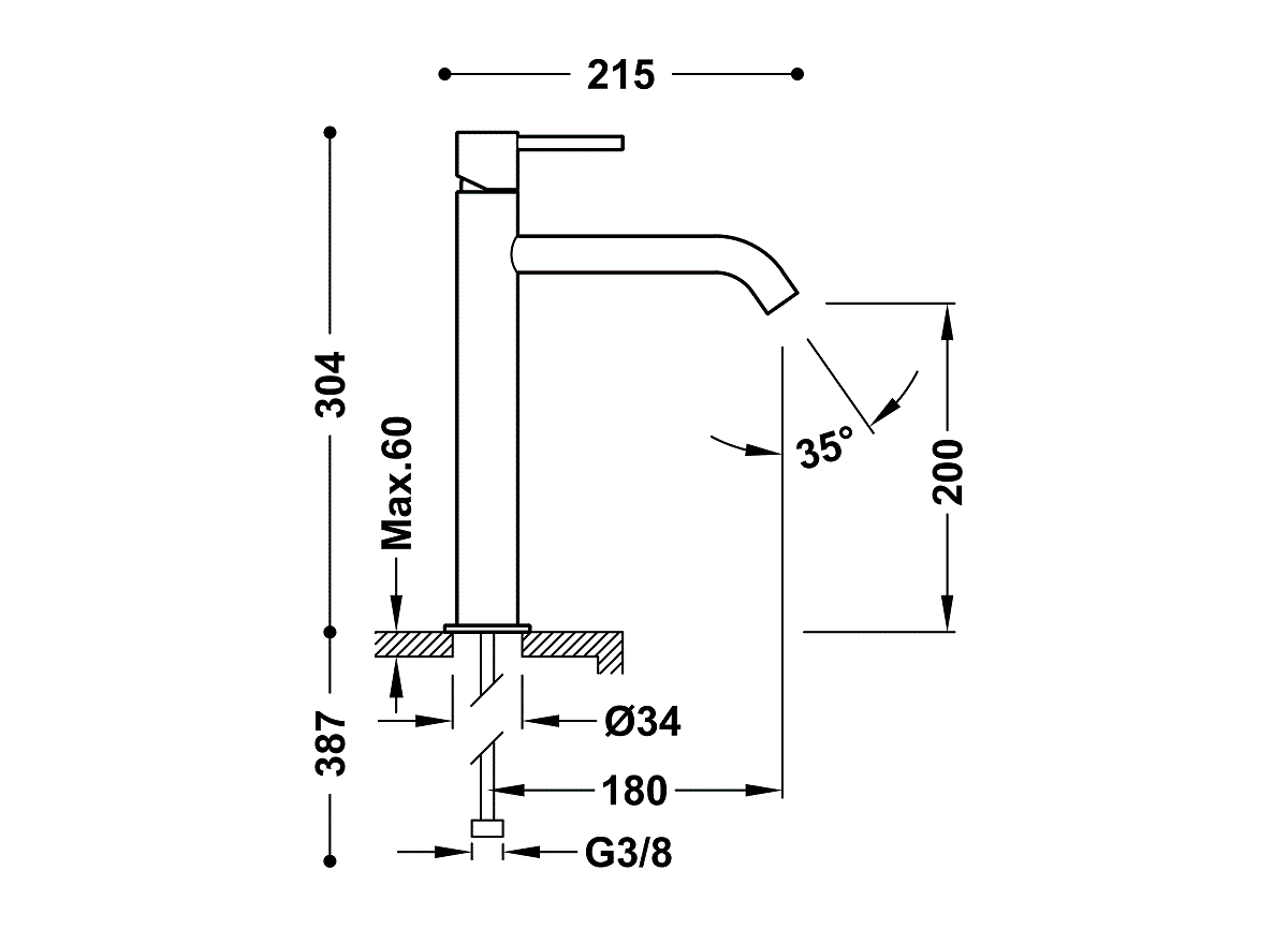 Tres Study Exclusive bateria umywalkowa wysoka Grafit 26230701GR