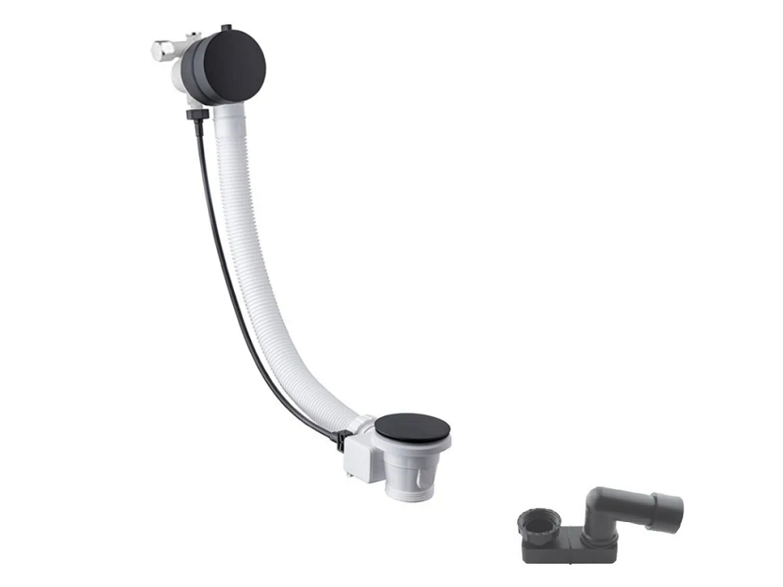 Vema Maira kompletny zestaw wannowy napełnianie przez przelew wannowy 80 cm czarny mat MAIPRZ80